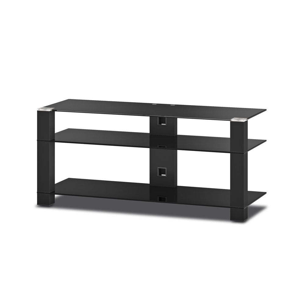 Sonorous PL 3400-B-HBLK — надежная тумба под телевизоры с диагональю до 55 дюймов, из закаленного стекла с закругленными углами и полированной кромкой. В задней основной ножке расположен кабель-канал для маскировки проводов и кабелей. Sonorous PL 3400-B-HBLK оснащена скрытой роликовой системой для плавного перемещения ТВ стойки вместе с телевизором и другой аппаратурой. ТВ тумба предназначена для телевизоров с диагональю от 32 до 55 дюймов (весом до 50 кг). Для того чтобы поставить телевизор большей диагонали, вам необходимо убедиться, что его ножки одна от другой не далее чем на 115 см. Напомним ,что ширина этой тв тумбы всего 120 см.