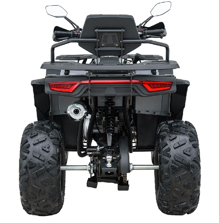 Рама квадроцикла – трубчатый стальной каркас, который выдерживает серьёзные нагрузки на бездорожье. Колёсная формула 4x2 (задний привод) делает SP200-11E простым в управлении, но достаточно мощным для большинства трасс. Передняя подвеска эффективно поглощает удары от ям и камней, обеспечивая плавную езду. Задняя подвеска гарантирует стабильность и комфорт даже на больших выбоинах. Тормоза дисковые гидравлические останавливают квадрик мгновенно, что особенно полезно в грязи или на скользких поверхностях. Большие шины 258-12 спереди и 2510-12 сзади со спортивным протектором прочно держатся за грунт, траву или грязь. Алюминиевые диски лёгкие, не ржавеют и к тому же добавляют квадроциклу стильного вида. Цифровой спидометр – это современно и удобно. Он чётко показывает скорость, пробег и ряд других важных параметров, в зависимости от настроек. В отличие от механических аналогов, цифровая панель выглядит стильно и легче читается в разных условиях освещения. Вы всегда будете знать, как быстро едете и сколько ещё можете проехать.
