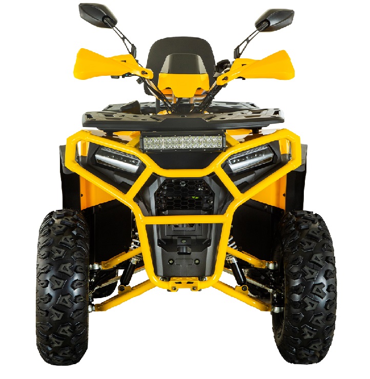 Дополнительные фары спереди усиливают основной свет, идеально для ночных прогулок или тумана. Они освещают те участки дороги, куда стандартные фары не достают. Это как второе зрение, ведь вы замечаете препятствия раньше, делая поездку безопаснее и динамичнее, без лишней усталости для глаз. Пульт позволяет запускать двигатель или сигнализацию с 10 метров, что особенно удобно, когда квадроцикл стоит в гараже или на парковке. Вам достаточно нажать кнопку – и он готов. Это очень экономит время и к тому же добавляет современности.