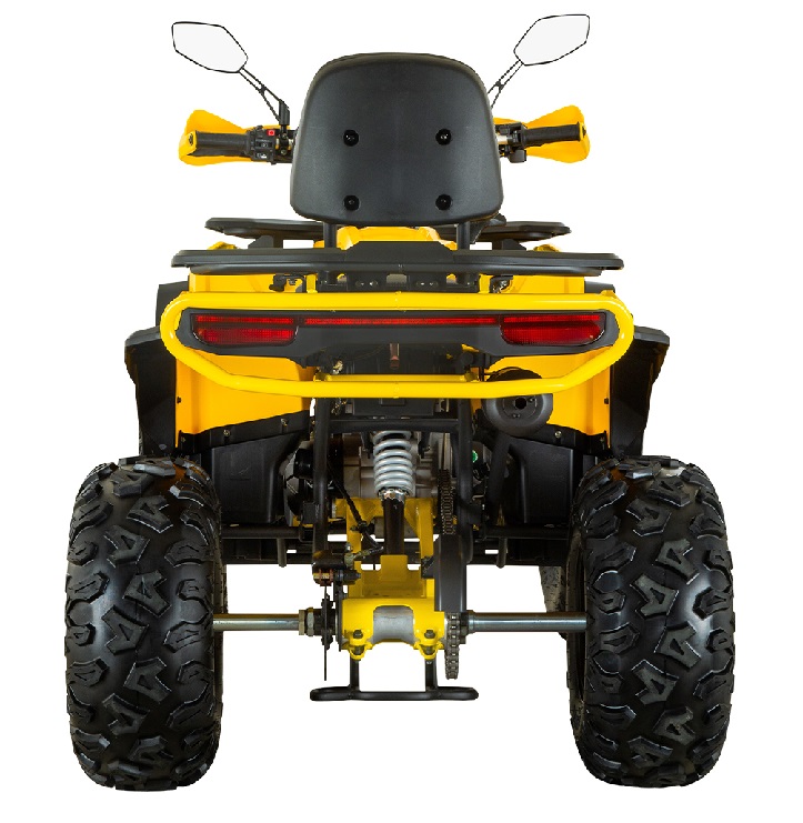 Фигурные передние фары на светодиодах – это не просто свет, а мощный поток, который пронзает темноту на 100 метров вперёд. С габаритными огнями они делают вас заметным для других, а расход энергии минимальный, ведь батарея держит долго. Квадроцикл SPARK SP200-5E оснащён задним навесным комбинированным фонарём, на светодиодах с тормозом, габаритами и указателями поворотов. Он сигнализирует другим участникам дорожного движения о ваших манёврах чётко и ярко. В сумерках это ваш щит, который предотвращает мелкие аварии и добавляет уверенности.