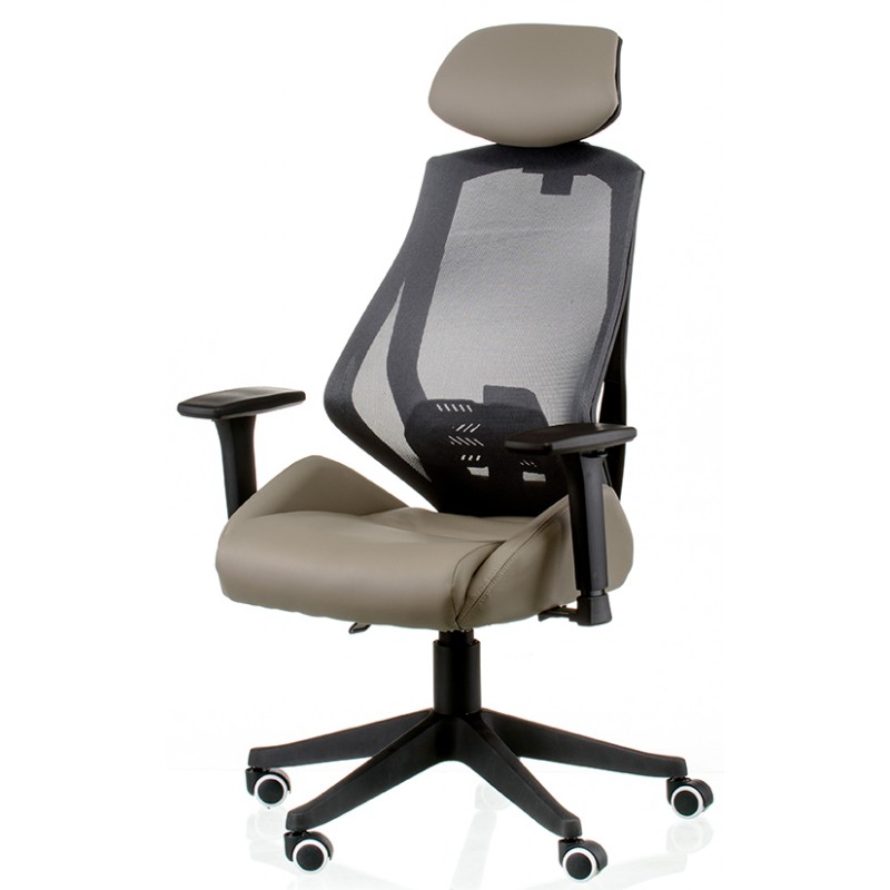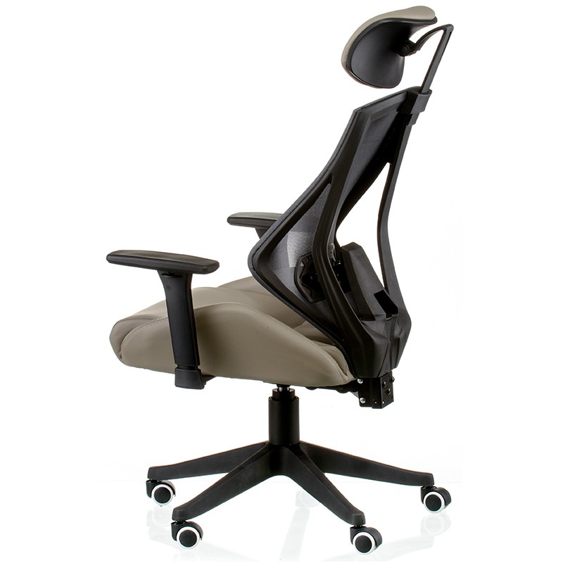 Материал покрытия: спинка - текстилайн (сетка), сидение и подголовник - арткожа - серого цвета