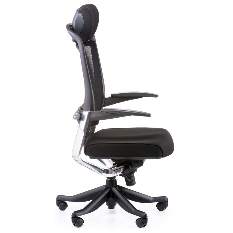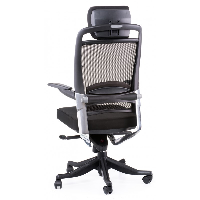 Подлокотники регулируется, выдвигаются на 6см , и поворачиваются на 3 угловых положениях. Дополнительная подлокотник петля, которая отлита из упругого полипропилена, добавляет гибкость в спинке при движении наклона. Подлокотники изготовлены из литого под давлением полипропилена (100% материала может использоваться для вторичной переработки). Черная внешняя рама сиденья кресла изготовлены из литого под давлением полипропилена, обивка ткань (100% материал может использоваться для вторичной переработки). В кресле используют синхронизированный механизм Tilt Tension Control с регулировкой качания под вес пользователя, multi-position Tilt Lock с фиксацией наклона в любом положении и регулировкой высоты, регулировки высоты сиденья - пневматическое. Продвинутый механизм Swivel-tilt обеспечивают многофункциональный контроль наклона и блокировки кресла. Также есть опция использования шарнира с возвратным ходом, с фиксированной высотой сиденья, чтобы можно было оставлять после себя кресла (называется памятью) под свои комфортные настройки. Основная структура и основа механизмов сделана из литой стали. Рычаги и ручки из литого полиамида (нейлона). Внутренние детали сделаны из стали. (100% материалов может использоваться для вторичной переработки) Пяти лучевая конструкция крестовины является эксклюзивным для модели Fulkrum, благодаря которой появилось дополнительное пространство для движения ваших ног. Эта крестовина изготовлена из отлитого стекловолокна и из литого под давлением алюминия с высоко-полированной отделкой заполнена нейлоном черного цвета. Ролики: 50mm двойные колесики из литого полиамида (нейлона). (100% материалов может использоваться для вторичной переработки).