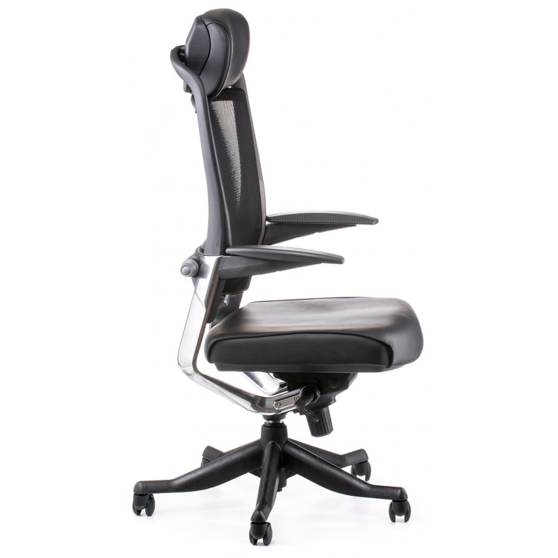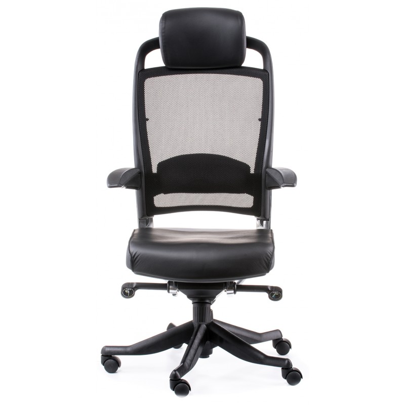 Материал обивки: сиденье-натуральная кожа, спинка-сетка (полиэстер)