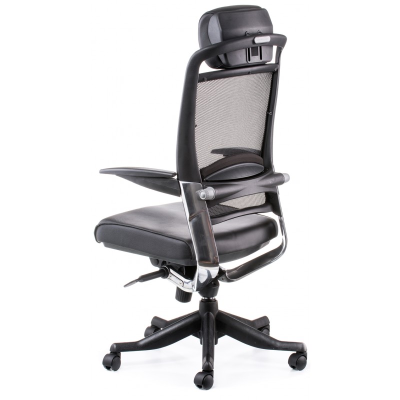 Подлокотники регулируется, выдвигаются на 6см , и поворачиваются на 3 угловых положениях. Дополнительная подлокотник петля, которая отлита из упругого полипропилена, добавляет гибкость в спинке при движении наклона. Подлокотники изготовлены из литого под давлением полипропилена (100% материала может использоваться для вторичной переработки). Черная внешняя рама сиденья кресла изготовлены из литого под давлением полипропилена, обивка ткань (100% материал может использоваться для вторичной переработки). В кресле используют синхронизированный механизм Tilt Tension Control с регулировкой качания под вес пользователя, multi-position Tilt Lock с фиксацией наклона в любом положении и регулировкой высоты, регулировки высоты сиденья - пневматическое. Продвинутый механизм Swivel-tilt обеспечивают многофункциональный контроль наклона и блокировки кресла. Также есть опция использования шарнира с возвратным ходом, с фиксированной высотой сиденья, чтобы можно было оставлять после себя кресла (называется памятью) под свои комфортные настройки. Основная структура и основа механизмов сделана из литой стали. Рычаги и ручки из литого полиамида (нейлона). Внутренние детали сделаны из стали. (100% материалов может использоваться для вторичной переработки) Пяти лучевая конструкция крестовины является эксклюзивным для модели Fulkrum, благодаря которой появилось дополнительное пространство для движения ваших ног. Эта крестовина изготовлена из отлитого стекловолокна и из литого под давлением алюминия с высоко-полированной отделкой заполнена нейлоном черного цвета. Ролики: 50mm двойные колесики из литого полиамида (нейлона). (100% материалов может использоваться для вторичной переработки).