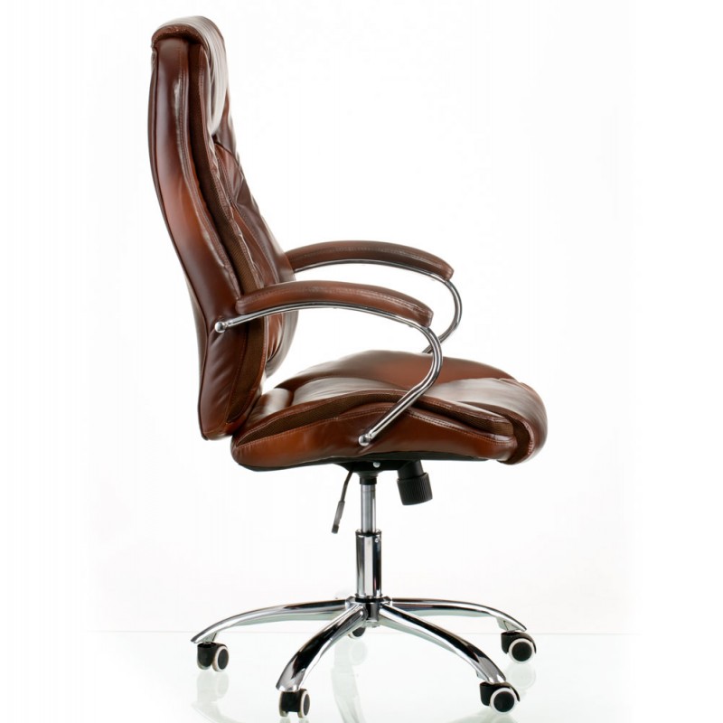 Подлокотники: нерегулируемые, материал - металл хромированный, обивка - мягкая арткожа коричневого цвета.