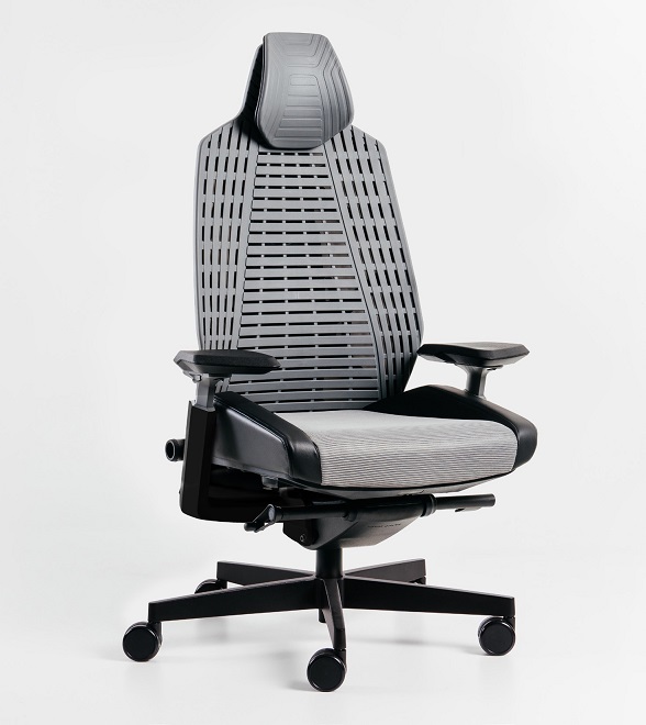 Підголівник - З гнучкого термопластика, на 100% придатного для переробки еластомеру чорного або сірого кольору, оббитий поліестером "RIBS". Сандвіч-сітка (100% перероблена) доступна у 4 кольорах. Задня частина виготовлена з чорного поліпропілену. Спинка - З термопластичного еластомеру чорного або сірого кольору, що забезпечує комфорт для спини. Також є варіант спинки з оббивкою сандвіч-сіткою "RIBS" з 100% переробленого матеріалу, у чотирьох різних кольорах, що дозволяє вибрати варіант, який відповідає вашим вподобанням. Задня накладка доступна в чорному або білому кольорі і виготовлена з поліпропілену, який забезпечує міцність і довговічність спинки. Поперековий відділ - Має поперекову прокладку, виготовлену з поліоксиметилену (ПOM), який на 100% підлягає переробці. Прокладка поперекового відділу може бути регульована по висоті на 10 см і по глибині на 3 см. Основа - Має п’яти ходову конструкцію, виготовлена з литого під тиском переробленого алюмінієвого сплаву. Цей матеріал забезпечує міцність і стійкість основи крісла. Основа покрита чорним епоксидним порошковим покриттям, що надає їй стильного зовнішнього вигляду і додатково захищає від пошкоджень і подряпин. Подвійні колеса діаметром 65 мм виготовлені з чорного формованого поліаміду (нейлону), забезпечують плавний і легкий рух крісла по підлозі, міцні і довговічні.