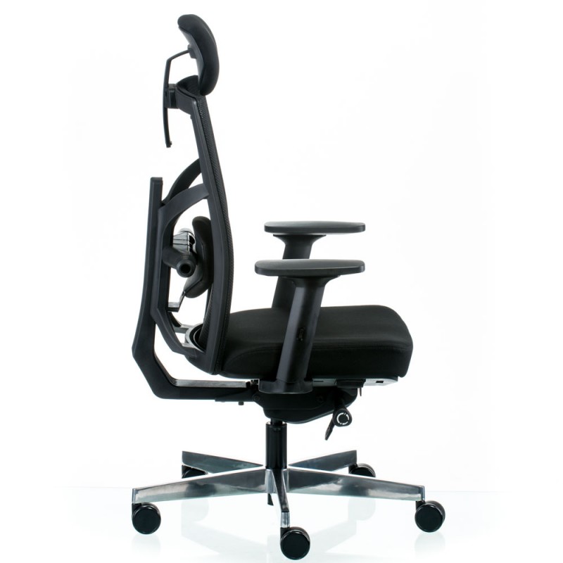 Подлокотники регулируется, выдвигаются на 6см , и поворачиваются на 3 угловых положениях. Дополнительная подлокотник петля, которая отлита из упругого полипропилена, добавляет гибкость в спинке при движении наклона. Подлокотники изготовлены из литого под давлением полипропилена (100% материала может использоваться для вторичной переработки). Черная внешняя рама сиденья кресла изготовлены из литого под давлением полипропилена, обивка ткань (100% материал может использоваться для вторичной переработки). В кресле используют синхронизированный механизм Tilt Tension Control с регулировкой качания под вес пользователя, multi-position Tilt Lock с фиксацией наклона в любом положении и регулировкой высоты, регулировки высоты сиденья - пневматическое. Продвинутый механизм Swivel-tilt обеспечивают многофункциональный контроль наклона и блокировки кресла. Также есть опция использования шарнира с возвратным ходом, с фиксированной высотой сиденья, чтобы можно было оставлять после себя кресла (называется памятью) под свои комфортные настройки. Основная структура и основа механизмов сделана из литой стали. Рычаги и ручки из литого полиамида (нейлона). Внутренние детали сделаны из стали. (100% материалов может использоваться для вторичной переработки) Пяти лучевая конструкция крестовины является эксклюзивным для модели Fulkrum, благодаря которой появилось дополнительное пространство для движения ваших ног. Эта крестовина изготовлена из отлитого стекловолокна и из литого под давлением алюминия с высоко-полированной отделкой заполнена нейлоном черного цвета. Ролики: 50mm двойные колесики из литого полиамида (нейлона). (100% материалов может использоваться для вторичной переработки).