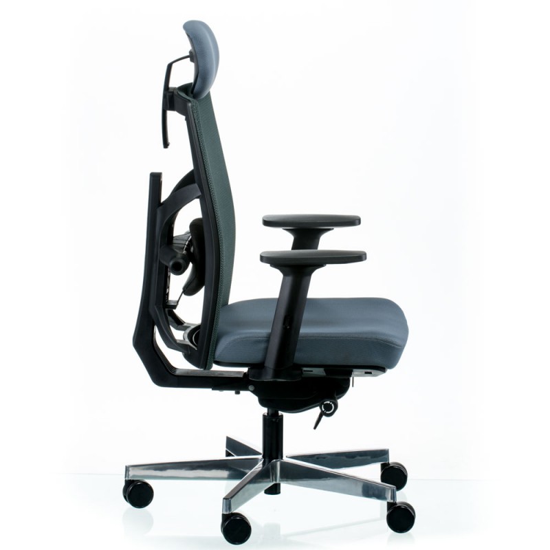 Подлокотники регулируется, выдвигаются на 6см , и поворачиваются на 3 угловых положениях. Дополнительная подлокотник петля, которая отлита из упругого полипропилена, добавляет гибкость в спинке при движении наклона. Подлокотники изготовлены из литого под давлением полипропилена (100% материала может использоваться для вторичной переработки). Черная внешняя рама сиденья кресла изготовлены из литого под давлением полипропилена, обивка ткань (100% материал может использоваться для вторичной переработки). В кресле используют синхронизированный механизм Tilt Tension Control с регулировкой качания под вес пользователя, multi-position Tilt Lock с фиксацией наклона в любом положении и регулировкой высоты, регулировки высоты сиденья - пневматическое. Продвинутый механизм Swivel-tilt обеспечивают многофункциональный контроль наклона и блокировки кресла. Также есть опция использования шарнира с возвратным ходом, с фиксированной высотой сиденья, чтобы можно было оставлять после себя кресла (называется памятью) под свои комфортные настройки. Основная структура и основа механизмов сделана из литой стали. Рычаги и ручки из литого полиамида (нейлона). Внутренние детали сделаны из стали. (100% материалов может использоваться для вторичной переработки) Пяти лучевая конструкция крестовины является эксклюзивным для модели Fulkrum, благодаря которой появилось дополнительное пространство для движения ваших ног. Эта крестовина изготовлена из отлитого стекловолокна и из литого под давлением алюминия с высоко-полированной отделкой заполнена нейлоном черного цвета. Ролики: 50mm двойные колесики из литого полиамида (нейлона). (100% материалов может использоваться для вторичной переработки).