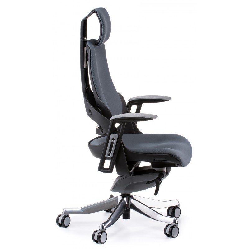 WAU Black Fabric несет тепло и комфорт (уют) благодаря мягкой стеганной ткани, а также благодаря органической текстуре (строению ткани). Все тканевые обивки прошли тест на истирание (тест Мартиндейла) - с показателем в 50000. При количестве циклов на истирание свыше 20000 обивка кресел считается надежной. Черная внешняя рама подголовника и серая внутренняя рама подголовника изготовлены из литого полипропилена (100% материал может использоваться для вторичной переработки) Черная внешняя рама кресла, внутренняя рама кресла серого цвета, ручка поясничной регулировки и колпачки изготовленны из полипропилена. Каркас спинки изготовлен из армированного волокном полипропилена (100% материалов может использоваться для вторичной переработки).