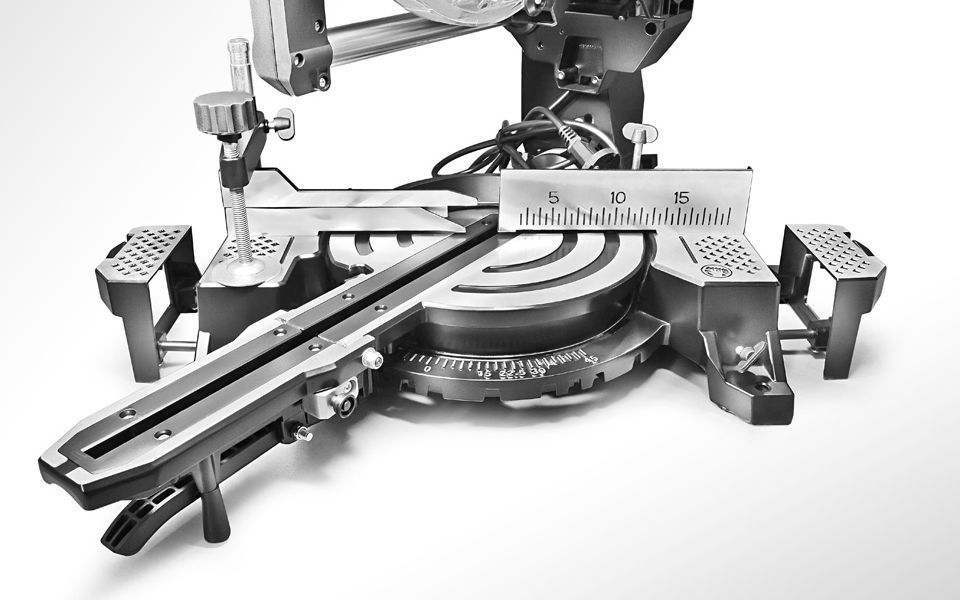 Удобный крепеж для заготовок надежно фиксирует деталь для ровного и точного реза;