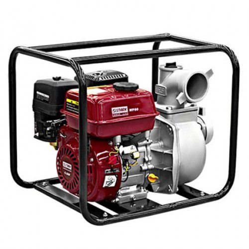 Бензомотопомпа Stark WP 50 предназначена для перекачивания чистой воды из бассейнов, колодцев, прудов. Мотопомпа оборудована 4-х тактным гильзованым двигателем Honda Type (OHV) с воздушным охлаждением и верхним расположением клапана. Мощность такого мотора составляет 6,5 л.с., а производительность достигает 500 л/мин. Мотопомпа способна всасывать жидкости с глубины до 6 м и подавать на высоту до 30 м. Двигатель расположен в металлической раме на специальных демпинговых подушках, которые значительно снижают уровень вибраций. Бензомотопомпа Stark WP 50 способна проработать без дозаправки до 2,5 часов.