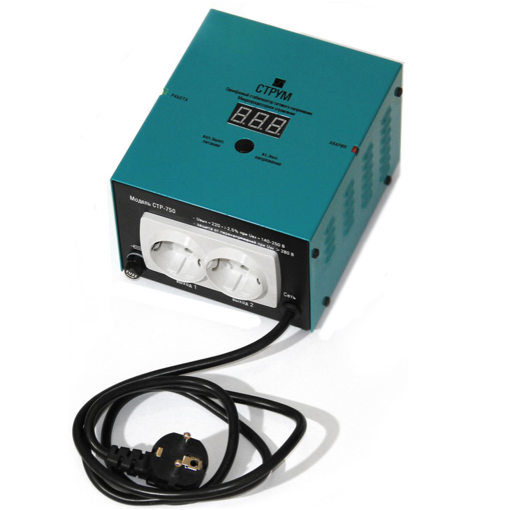 Стабилизатор напряжения Струм СТР-500 — предназначен для работы с бытовыми и промышленными электроприборами мощностью до 500 Вт от сети переменного тока 220 В / 50 Гц. Стабилизатор напряжения обеспечивает поддержку напряжения на уровне 220 В с точностью ±2.5% в рабочем диапазоне входных напряжений, обеспечивает защиту от повышенного и пониженного напряжения сети. Струм СТР-500 не вносит искажений в выходное напряжение и может работать с любыми типами нагрузок. Мощности стабилизаторов указанны при входном напряжении 160 В. Стабилизатор имеет тепловую защиту и защиту от перегрузок, индикацию входного и выходного напряжения, и управляется всего одной кнопкой.Идеально подходит для защиты от перенапряжений в сети, ошибок электриков, коротких замыканий и резких бросков. Прекрастно зарекомендовали себя при работе с котельным оборудованием многих марок как импортного так и отечественного производства.