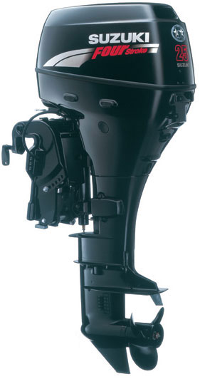 Подвесные четырехтактные лодочные моторы Suzuki DF25RS и DF25RL - первые четырехтактные подвесные моторы Suzuki с V-образным двухцилиндровым блоком цилиндров. Это позволило уменьшить не только вибрацию двигателя, но и его размер. В DF25 применена технология CDI - встроенный компьютер постоянно контролирует температуру двигателя и количество оборотов в минуту, и на основании этих показаний автоматически устанавливает момент зажигания. Эти модификации имеют электрический запуск и дистанционное управление. Инженеры Suzuki научились достигать высокой мощности в компактном и легком двигателе.
