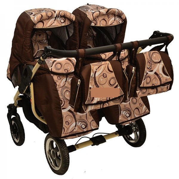 Универсальная коляска Tako Jumper DUO Fantasy 19 Люльки достаточно просторные, в них Вы сможете катать малышей приблизительно до достижения ими 6-ти месячного возраста. Спинка регулируется. В капюшонах люлек для удобства переноса, установки и снятия предусмотрены ручки. Прогулочные блоки независимы друг от друга. Спинки опускаются, а подножки подымаются. Малышам уютно будет спать в этой колясочке. Также возможна установка комбинации люлька — прогулочный блок. В прогулочных блоках малыши пристегиваются пятиточечными ремнями, также безопасность обеспечивают защитные бамперы и паховые ремни. Колеса коляски одинарные надувные, передние — поворотные, но при необходимости их можно зафиксировать. Для удобства мамы предусмотрены регулировка высоты ручки, удобные рюкзачки и большая корзина для покупок. Вес этой колясочки сравним с весом колясок для одного ребенка.