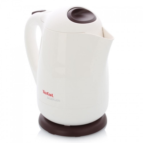 Чайник SILVER ION, 1.7л, 2400Вт, ультраполированный нагревательный элемент, терморегулятор для выбора температуры, световой индикатор,центральное подключение, фильтр против накипи, кнопка автоматического открывания, блокировка крышки, цвет: белый/коричневый