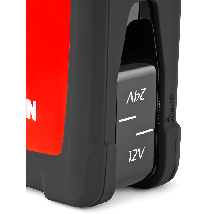 Оснащено пусковыми кабелями, разъемом прикуривателя и сетевым блоком питания.