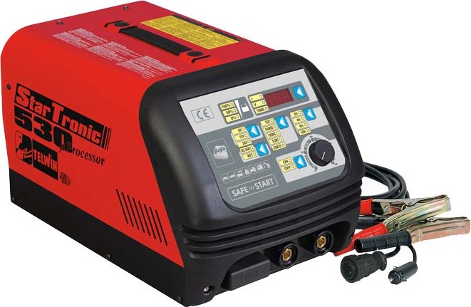 арядные устройства аккумуляторов и цифровые пусковые устройства (стартеры), управляются при помощи микропроцессора. Они подходят для зарядки всех типов аккумуляторов (WET, GEL, AGM), с напряжениями 6/12/24 В и запуска легковых автомобилей, фургонов и легких грузовых автомобилей. Порядок работы: TEST (ТЕСТ), CHARGE (ЗАРЯД), TRONIC, START (ПУСК) и STAND-BY (РЕЗЕРВ). Функция TRONIC гарантирует электронное управление зарядного тока с автоматическим прерыванием и восстановлением. Новая технология SAFE START не повреждает электронные бортовые системы на этапе запуска (START), поскольку устраняет сверхнапряжение, типичное для традиционных пусковых устройств. Функция STAND-BY, включающаяся при помощи специального соединения с розеткой прикуривателя, позволяет отсоединить аккумулятор от автомобиля и выполнить его зарядку, не теряя всю информацию и сделанные настройки бортового компьютера. Характеристики: выбор тока заряда 1÷40 A (мод. 530) 1÷30A (мод. 330)