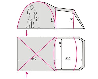 Высококлассная семейная пятиместная палатка для длительного отдыха, трехсезонного назначения. Просторный и высокий тамбур идеально подходит для размещения багажа или организации кемпинговой кухни. Возможность входа в тамбур с двух сторон и эффективная вентиляция обеспечивают необходимый комфорт. Конструкция позволяет использовать тент без спального помещения.