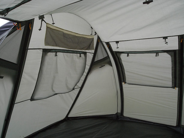 Просторный передний тамбур имеет три входа, и в нем можно вместить стол, стулья и кемпинговую кухню. Дополнительный задний вход в спальное помещение обеспечивает эффективную вентиляцию. Для большего уюта и комфорта можно пристегнуть дополнительный пол в тамбур (входит в комплект).