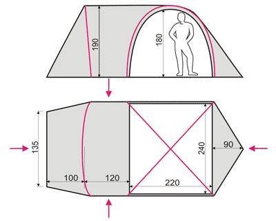 Бесплатная доставка по Украине !!! Максимально комфортная палатка для семейного отдыха. Просторный передний тамбур имеет три входа и в нем можно вместить стол, стулья и кемпинговую кухню. Дополнительный задний вход в спальное помещение обеспечивает эффективную вентиляцию. Для большего уюта и комфорта можно пристегнуть дополнительный пол в тамбур (входит в комплект). Конструкция позволяет использовать тент без спального помещения как столовую, склад или базовую палатку.