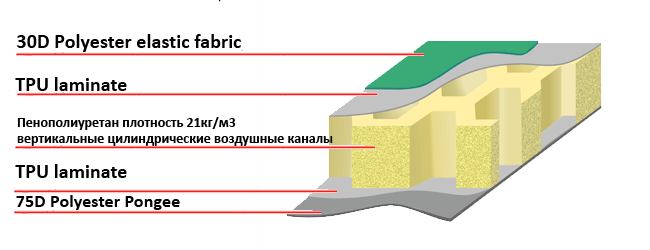 Верх — 30D Polyester elastic fabric, TPU laminate