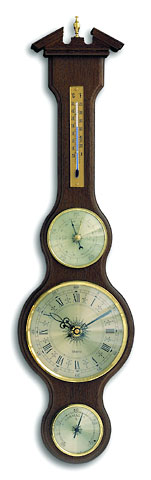 Барометр "Domatic" (высокоточный механизм) - измерение атмосферного давления, мм, hPa Термометр - измерение температуры, °С Гигрометр - измерение относительной влажности воздуха Кварцевые часы бесшумные Цвет дерева - красное дерево.
