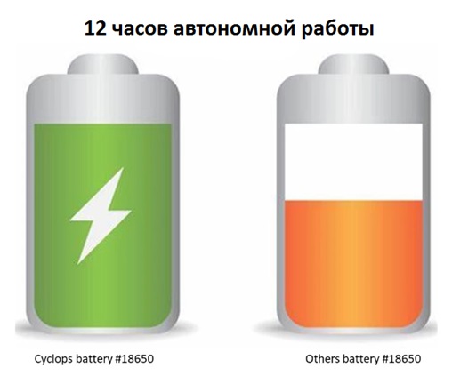 Система питания – 2 батареи 18650, 12 часов автономной работы;