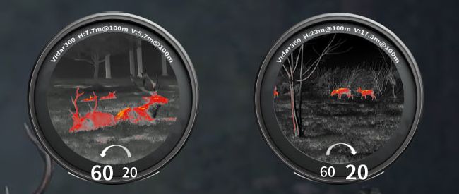 Для виявлення можна використовувати широке поле зору з фокусною відстанню 20 мм. Для ідентифікації можна використовувати вузьке поле зору з фокусною відстанню 60 мм.