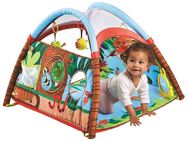 7+ месяцев: Превратите коврик в тоннель и зовите ребенка, чтобы он полз через него к вам.