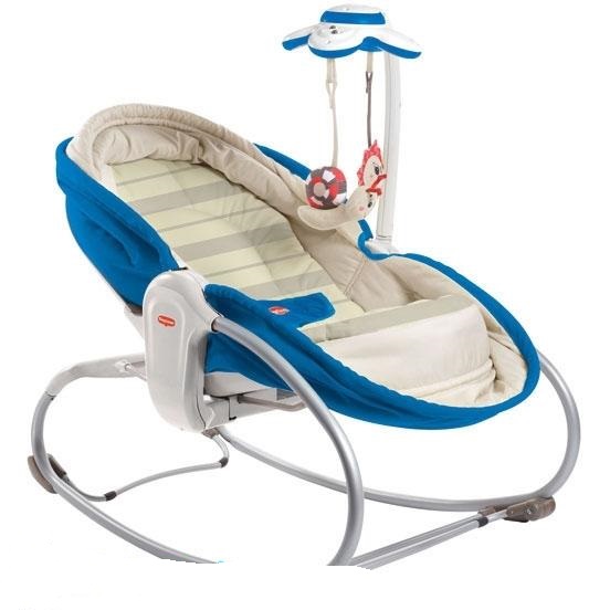 Кресло-кроватка-качалка 3 в 1  Tiny Love предназначена для детей от 0 до 9  мес. Кроватка имеет 3 положения спинки: лежа, полулежа и полусидя, что позволяет использовать ее как полноценную люльку. Устройство вибрации и музыкальный мобиль с мелодиями служат для развлечения и убаюкивания. В кроватке-качалке Tiny Lovе еще есть дополнительный ортопедический матрас-дно для более удобного положения Вашего малыша и ремни безопасности. А функция вибромассажа поможет Вашему крохе быстрее успокоиться и заснуть. Кресло снабжено противоскользящими полозьями со стопорами, мягким чехлом, удобными ремнями безопасности и подьемными бортиками для комфортного сна. В кресле-кроватке-качалке Tiny Lovе ребенку будет очень удобно и играть, и отдыхать от рождения и до 2-х лет.