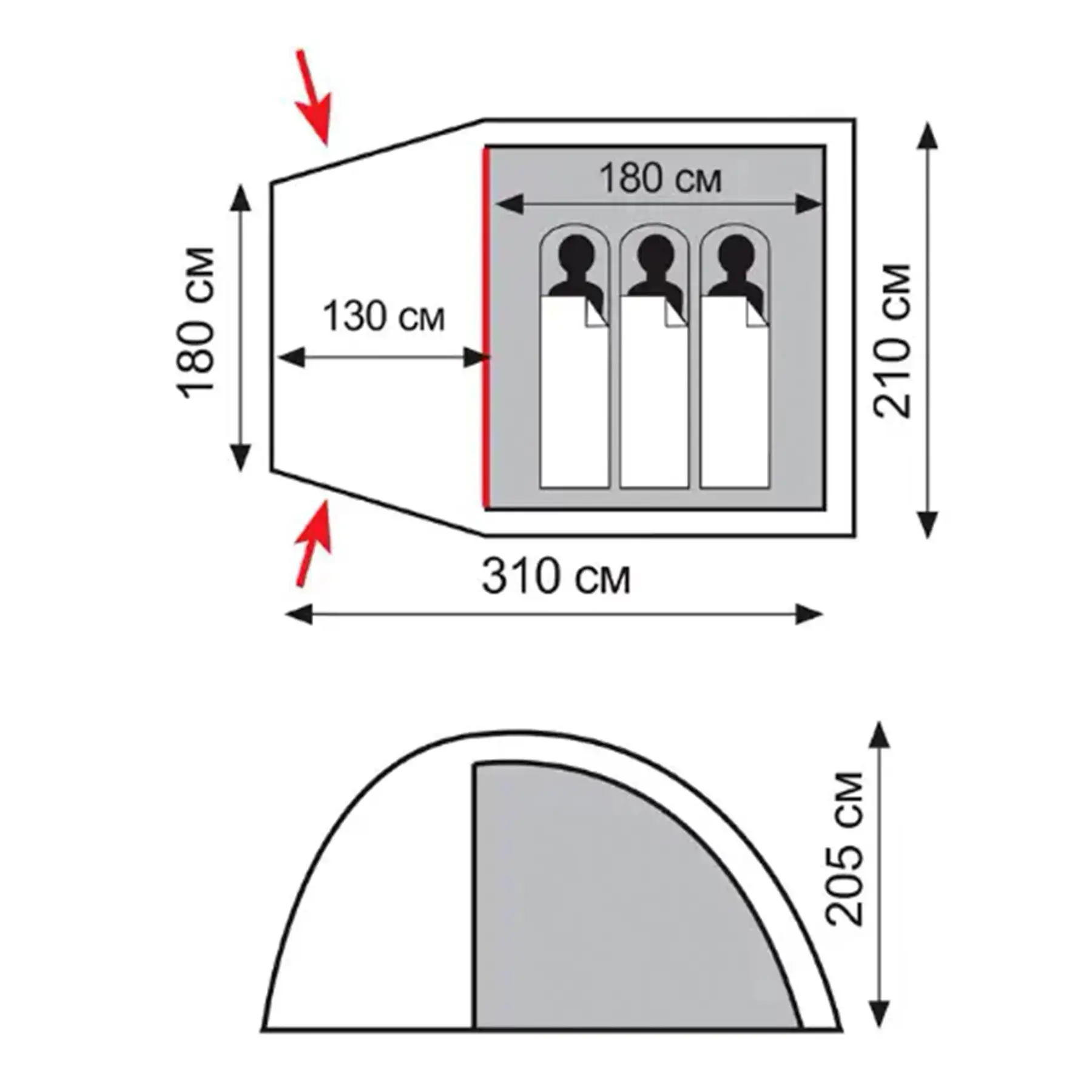 - Тент: наружный - 100% полиэстер 75D/190T WR PU 2000 мм в ст., внутрений - дышащий полиэстер 65D/68D 190T