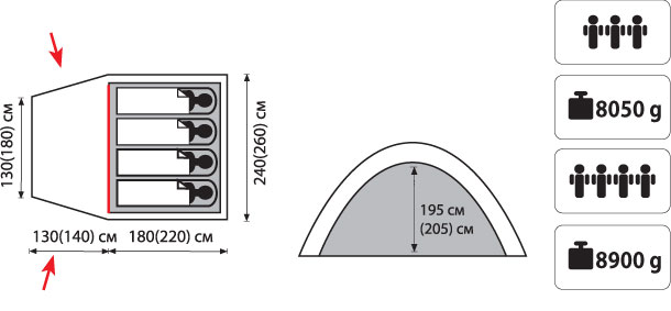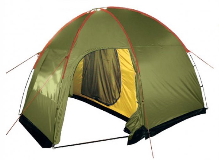 Четырехместная кемпинговая палатка с двумя входами и большим тамбуром