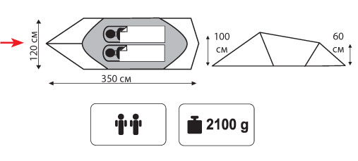 - Тент: 100% полиэстер 75D/190T Diamond RipStop, 8000 мм в ст
