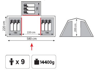 Девятиместная кемпинговая палатка с одним входом и большим тамбуром