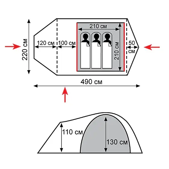 - Тент: 100% полиэстер 75D/190T Diamond RipStop, 8000 мм в ст