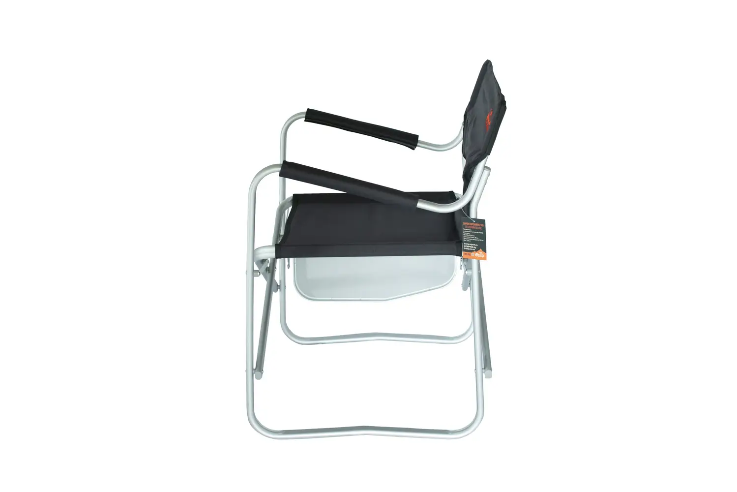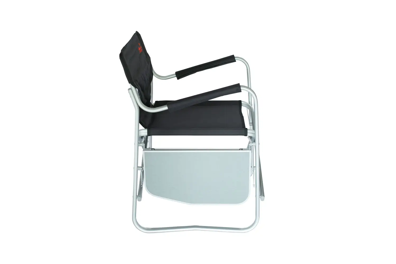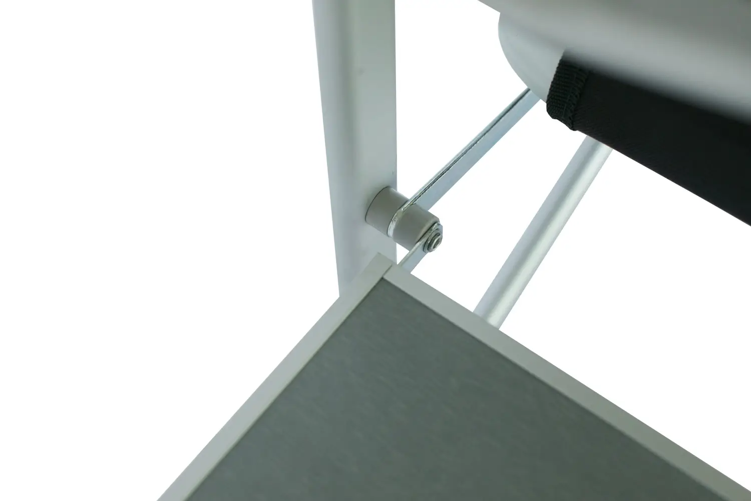 Стул оборудован откидывающимся сбоку подлокотника столиком.