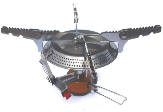 Мощная газовая горелка Tramp TRG-043, навинчивающаяся на резьбовой баллон, с широкой рабочей частью конфорки, раскрывающиеся «лапки» -держатели которые позволяют использовать посуду с широким диаметром дна объемом до 5-6 литров. Эта модель может «прокормить» компанию до 7 человек. Складные упоры-держатели могут использоваться в 2 положениях : раскрытом – под большие котлы или сковроду, и закрытом – для небольших котелков и кружек. Модель оснащена встроенным пьезоподжигом Горелка предназначена для использования с резьбовыми баллонами (epi-gas) Tramp TRG-002, TRG-003. Так же, есть возможность подключения горелки на штоковый баллон Tramp TRG-001 с помощью переходников Tramp TRG-018 и TRG-011. Характеристики: Материал: нержавеющая сталь Вес: 183гр. Мощность: 3100 Вт Время работы на 1 баллоне 110г. – 38мин. 230г. – 80мин. 450г. – 155мин. Размер: в разложенном виде:170x75мм в сложенном виде: 105x75 мм Время закипания 1 л. воды: 3мин. 55сек. Упаковка: пластиковый кейс