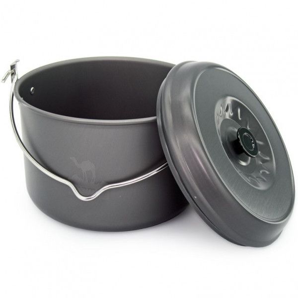 Походный котел из анодированного алюминия с крышкой объемом 4,6 л литра. Анодированый алюминий прочнее и устойчивей к деформаци обыкновенного алюминия. Анодированный алюминий защищён от коррозии. Оксидная пленка не отслаивается от металла и обладает высокой износостойкостью. У него выше показатель теплопровдимости благодаря чему еда в посуде из этого материала готвится еще быстрее и лучше, экономя время приготовления и расход топлива. Котелок имеет круглую ручку для подвешивания над костром. Плотно прилегающая крышка предотвращает попадание пепла и грязи в приготовляемую пищу. Толстые стенки котелка обеспечат долгий срок использования. Вес 730 гр.