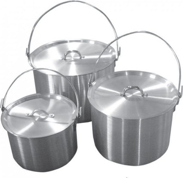 Походный алюминевый котел с крышкой объемом 4,8 литров. Благодаря высокой теплопроводности алюминия в таких котлах еда готовится быстро и равномерно, экономя топливо и время приготовления. Толщина стенок котелка в 1,1 мм обеспечит его долгий срок использования. Расчитан на семью или группу до 6 человек. Вес: 500 г.
