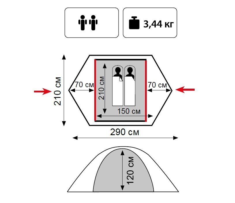 - Тент: 100% полиэстер, 75D/190T WR PU 4000 мм в ст