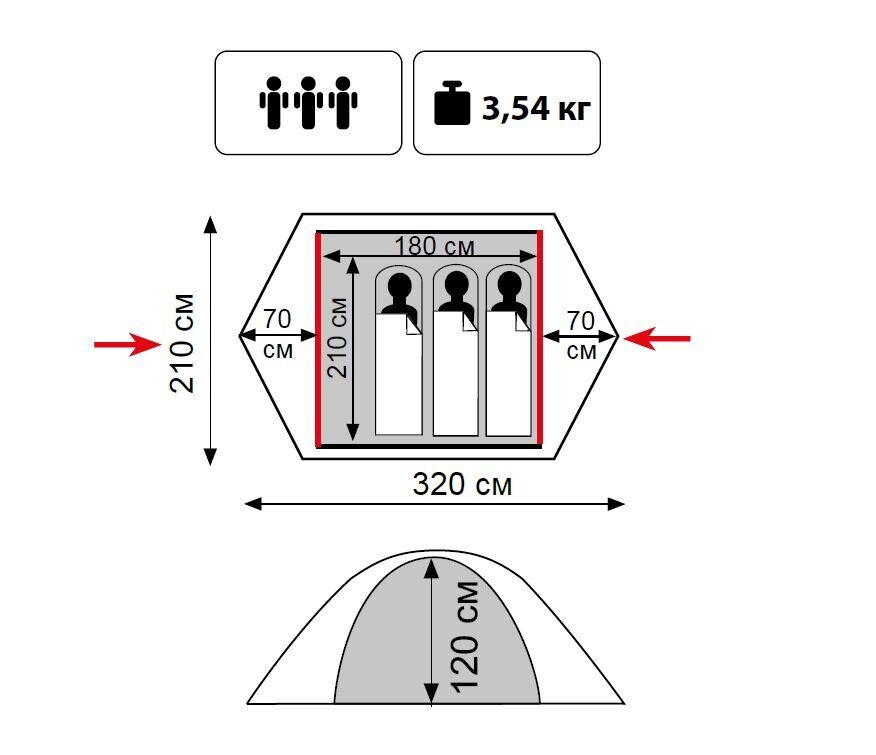 - Тент: 100% полиэстер, 75D/190T WR PU 4000 мм в ст