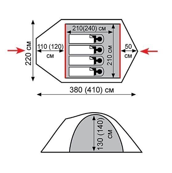 - Внутр. палатка: 100% дышащий полиэстер