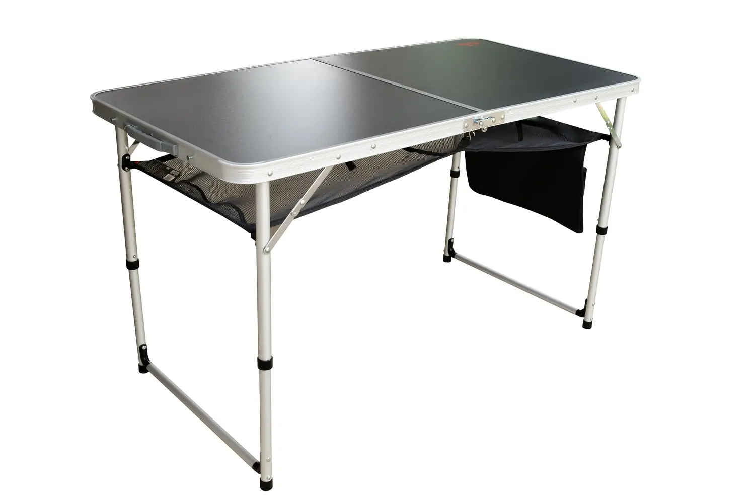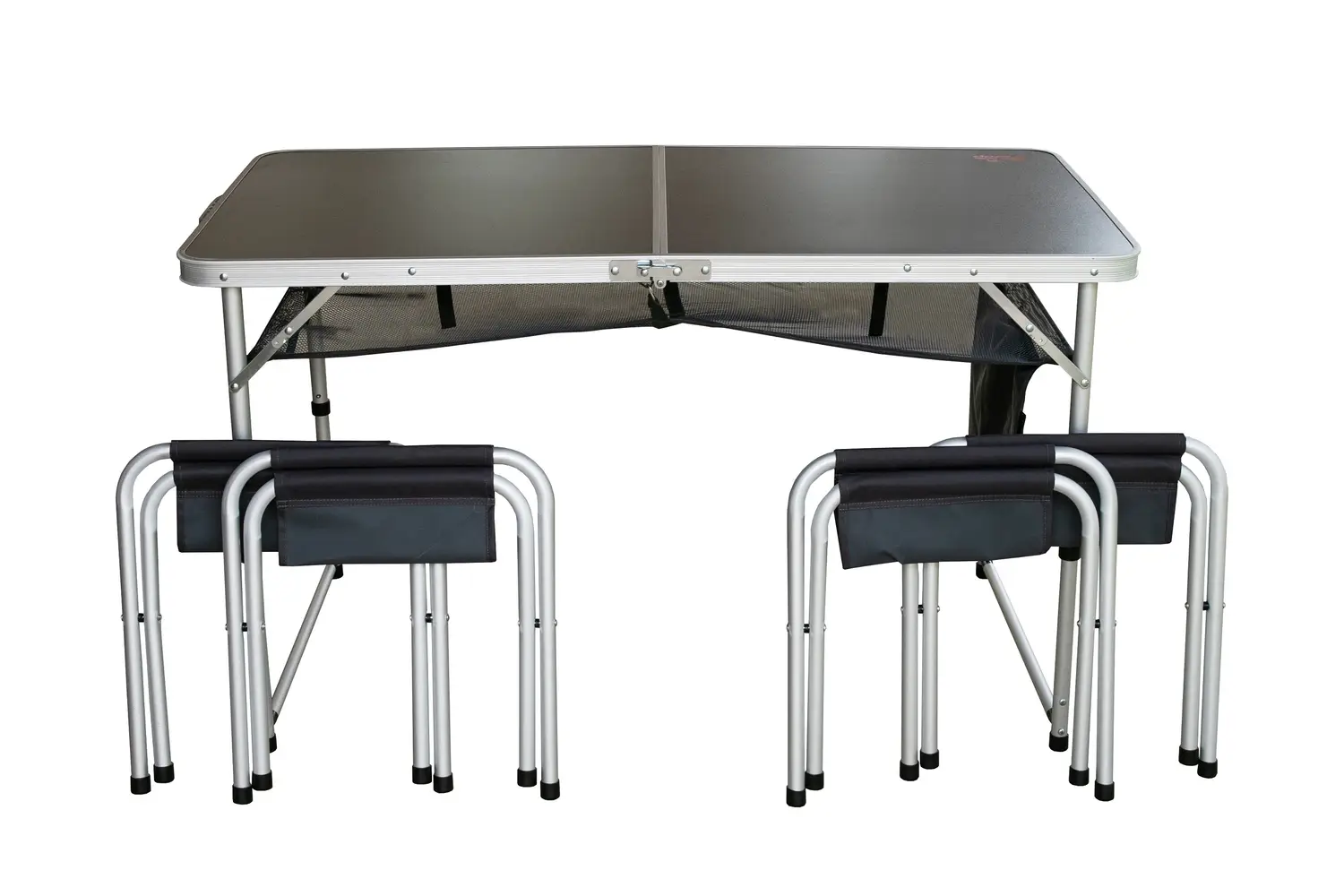 Стол укомплектован широкой подвесной сетчатой полкой которая крепиться под столешницей.