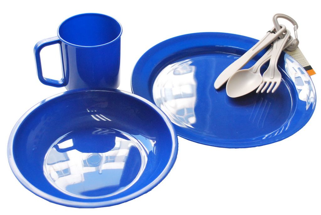 Короткое описание Набор дорожной посуды (2 тарелки, кружка, набор ложка/вилка/нож) – полный комплект для одного человека.