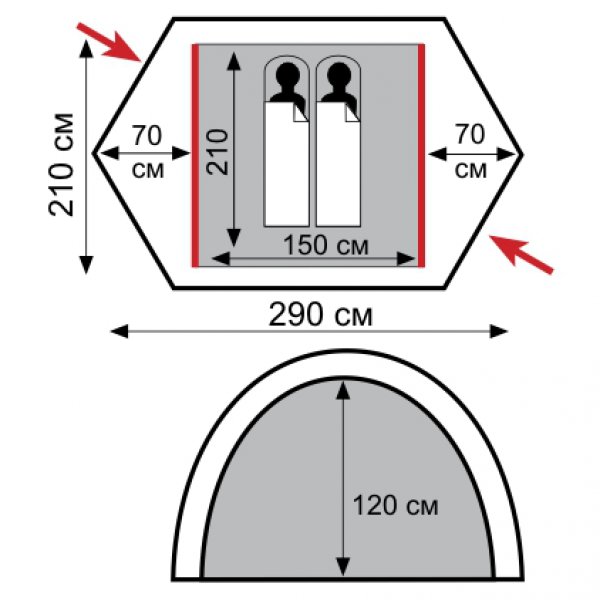 - Палатка имеет 2 вентиляционных клапана с двумя регулируемыми по высоте стойками