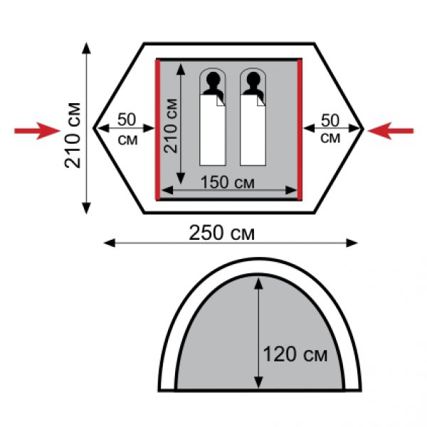 - Тент: 100% полиэстер 75D190T RipStop, PU 6000 мм в ст