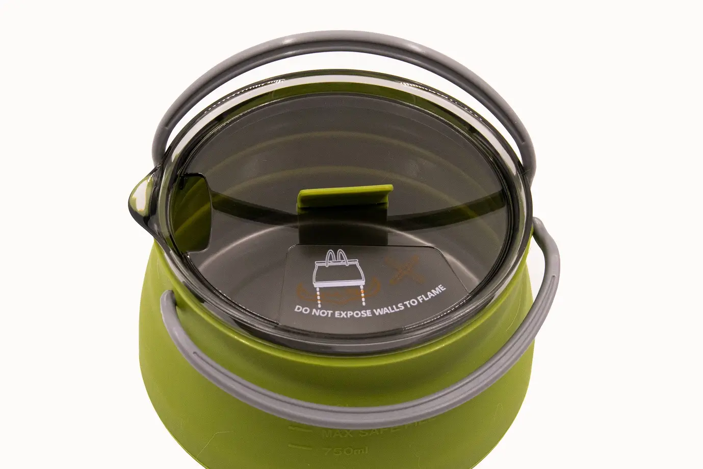 широкое основание чайника поглощает максимум тепла от горелки, защищая силиконовые стенки от пламени.