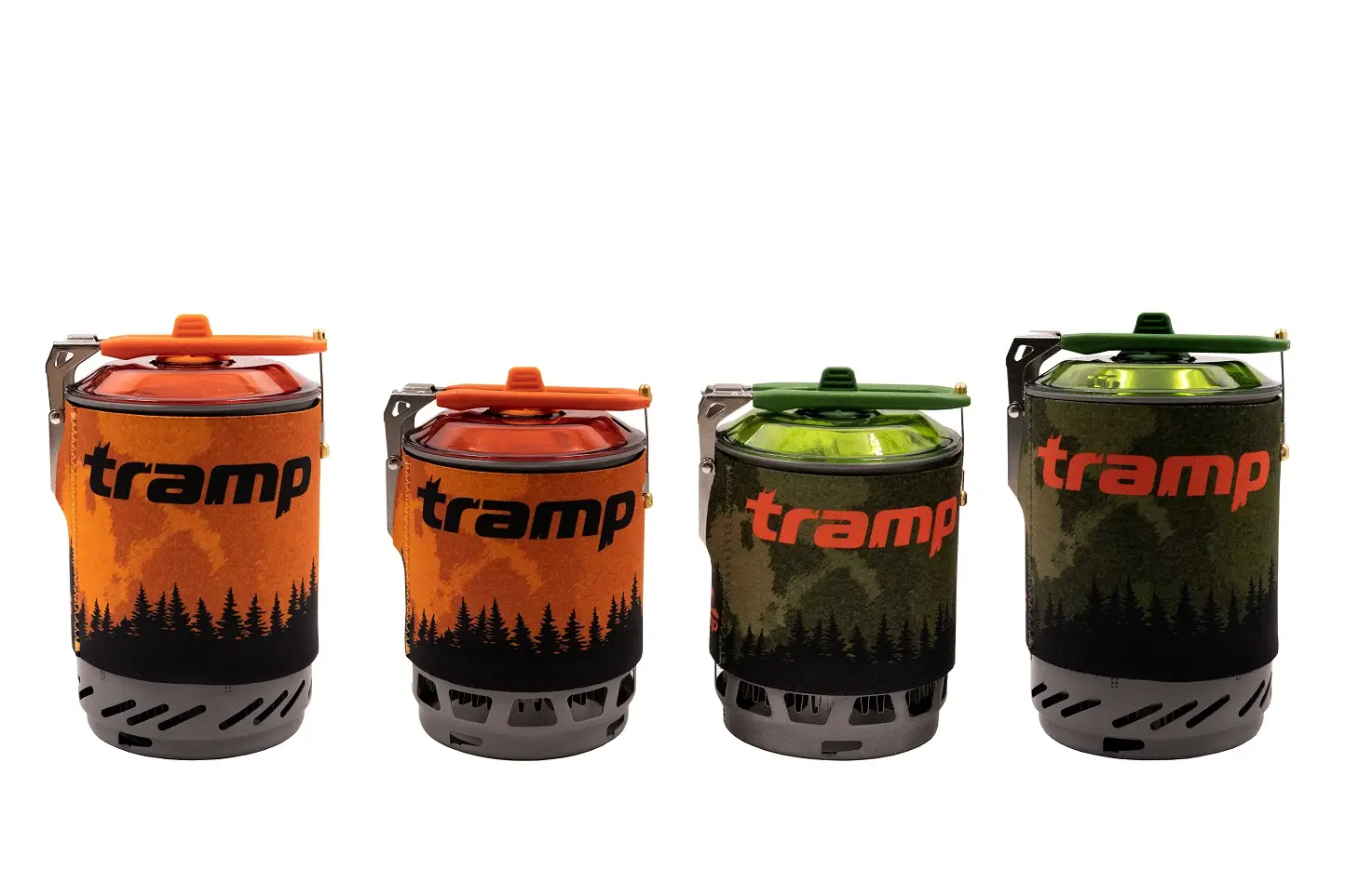 Интегрированная система приготовления пищи Tramp TRG-115 состоит из котелка на 1 литр в неопреновом чехле со встроенным в ветрозащитный экран радиатором – теплообменником и подключаемой к нему газовой горелки, а так же подставки под газовые баллоны и таганка для использования другой посуды в режиме обычной горелки.