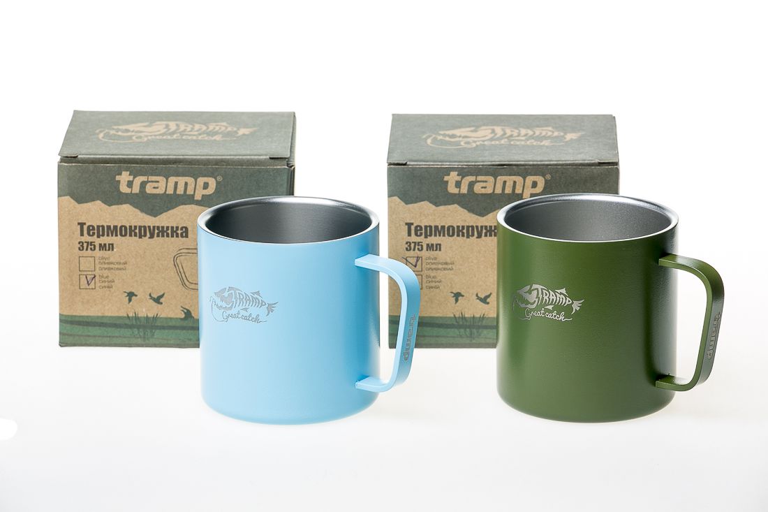 Термокружка Tramp TRC-098 объемом 375 мл из высококачественной пищевой нержавеющей стали. Удобная ручка, новые приятные расцветки – голубая и оливковая.