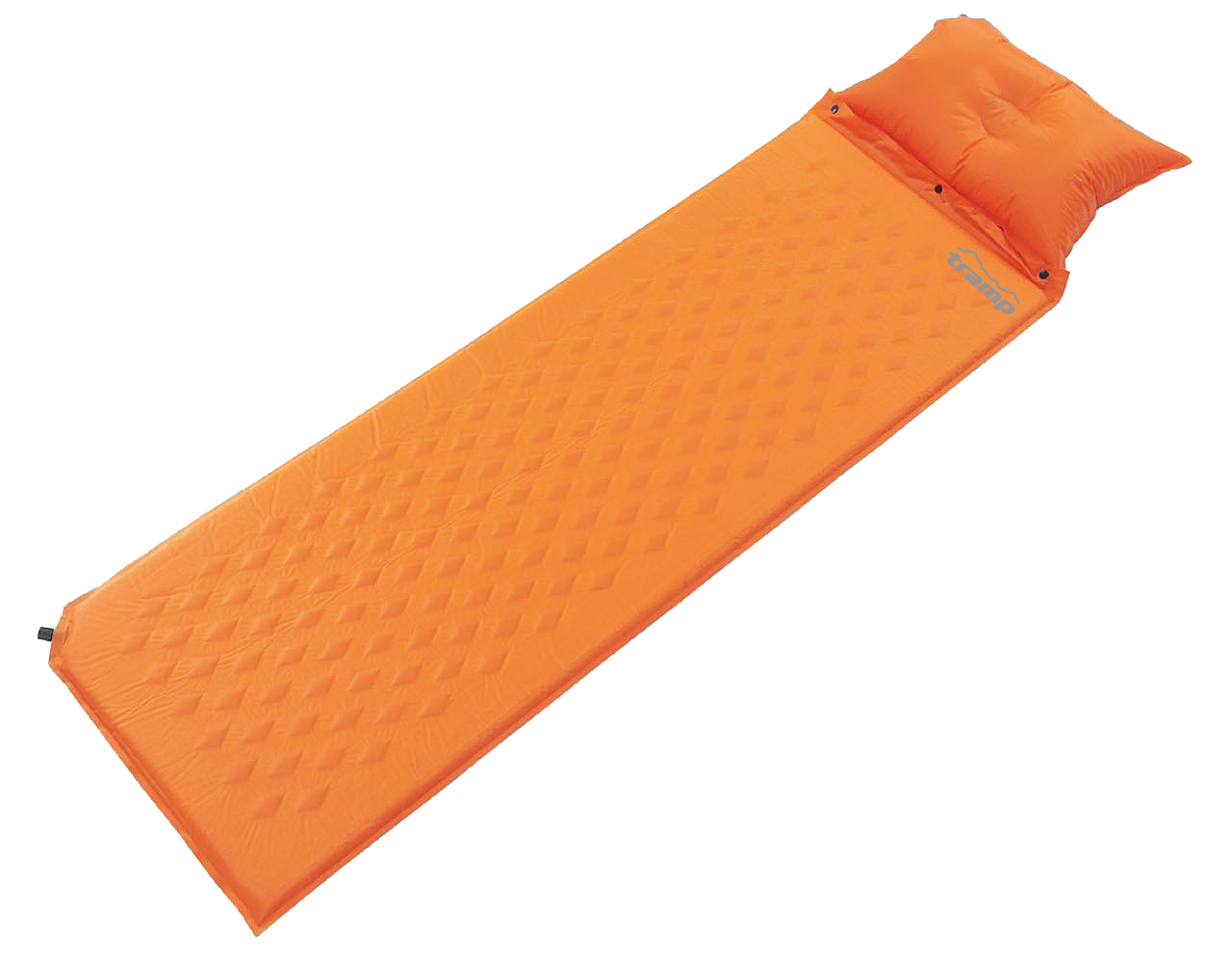 Самонадувающийся трехсезонный коврик (весна-лето осень) ярко оранжевого цвета с отстегивающейся подушкой.